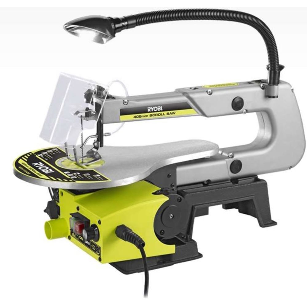 Ryobi RSW1240G kontursåg har en robust gjutjärnsbas som minskar vibrationer och förbättrar sågnoggrannheten. Den justerbara hastigheten gör att du kan arbeta flexibelt med olika material och arbetsstycken.
